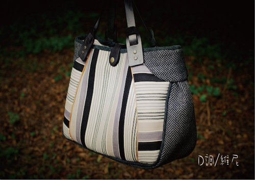 從選布 配色 條紋的裁剪,費了一番功夫,最後還是改不了,想突破一下,使用了皮革滾邊條,