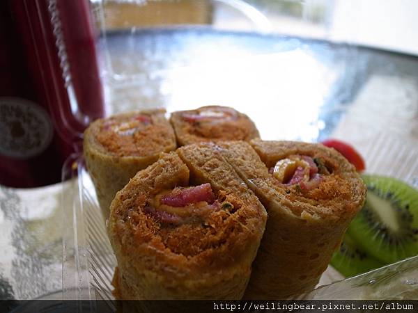 這花捲土司可用心的,看到那躲在角落黃黃的薄片嗎?