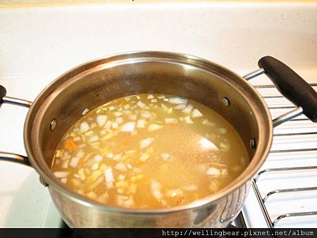 步驟四:(加入水水煮沸,蔬菜湯湯底完成囉!湯色很美吧...)