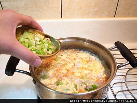 步驟六:(碎肉煮開後加入其他食材除了蛋及芹菜...就快完成囉!)