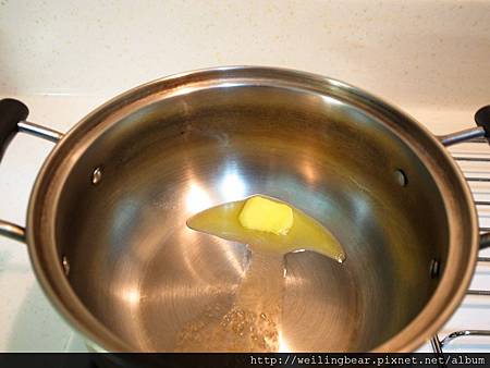 步驟一:(請開小火,放入奶油,不喜歡加奶油的美美媽媽們可以用一般食用油取代,加入一匙約5g)