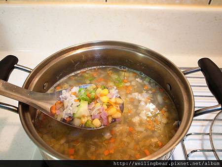 蔬菜湯香味緩緩飄出了...好想偷吃呦!