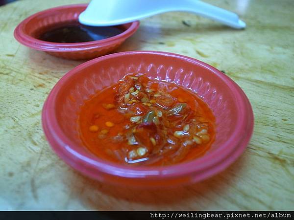 維尼熊愛鵝血糕,軟硬適中,再沾點特製辣醬,呼嗚!再多也給它吃下去...